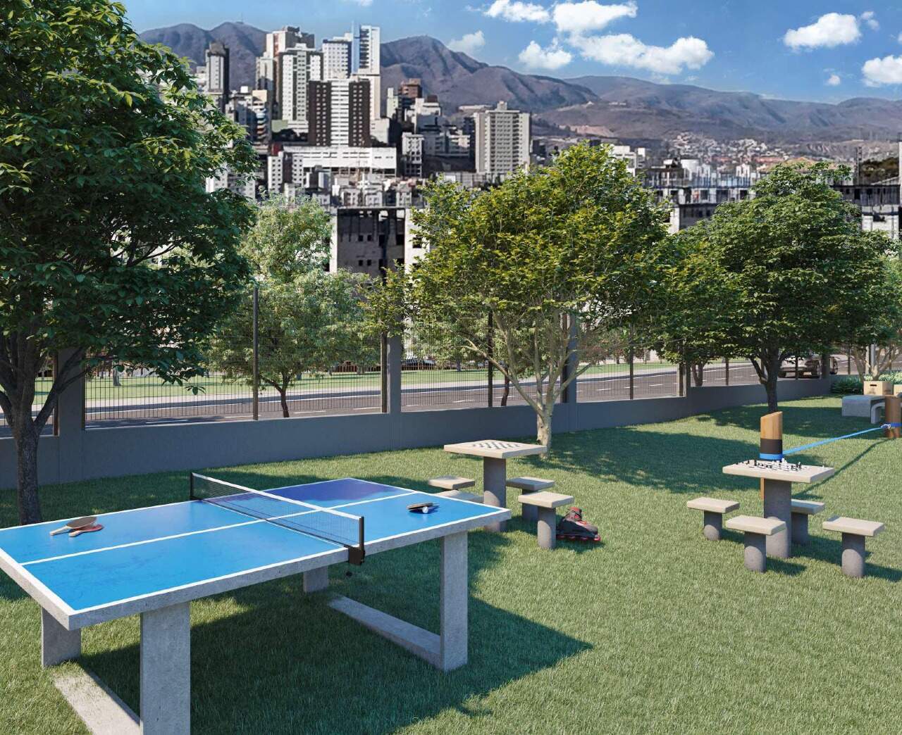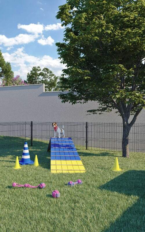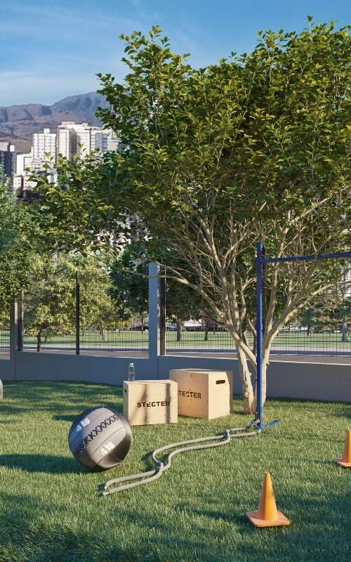 Além da praticidade, o condomínio também se destaca pela segurança: portaria 24h, eclusa de pedestres e veículos, câmeras e previsão de porta eletromagnética.