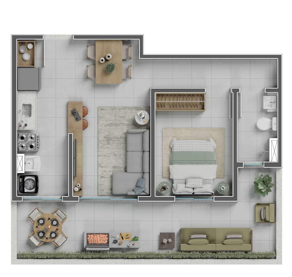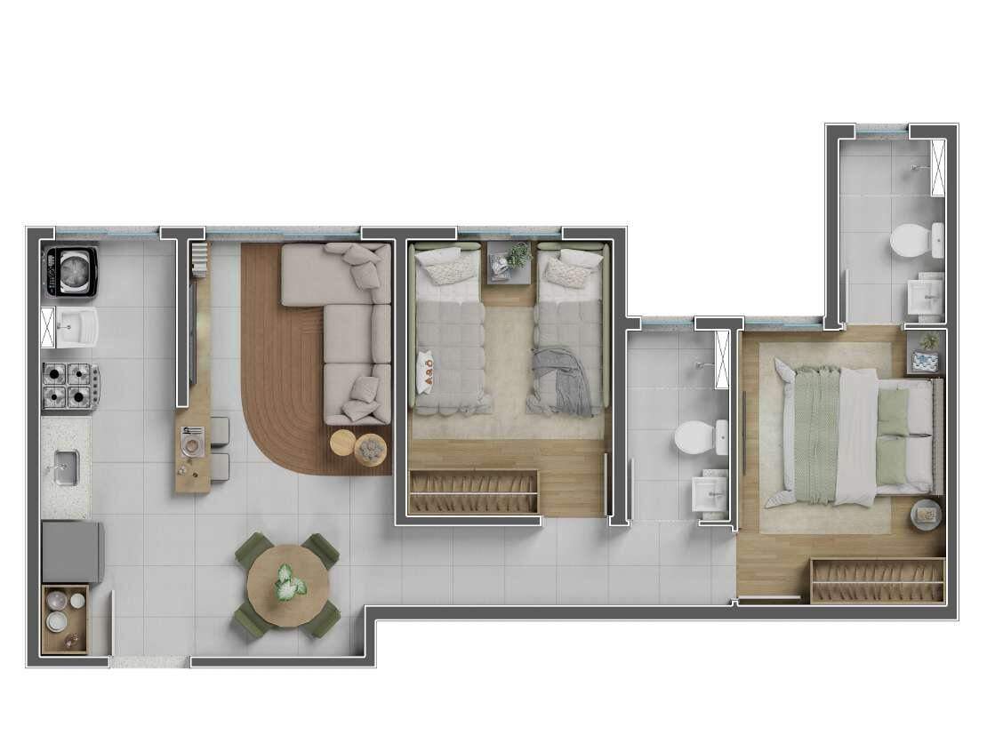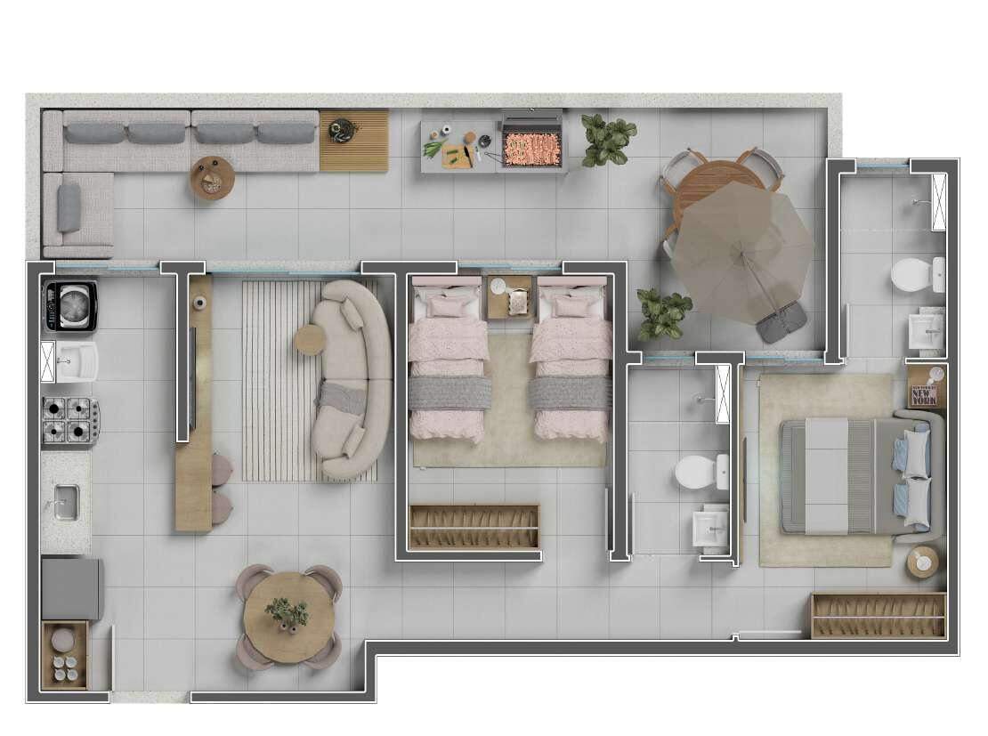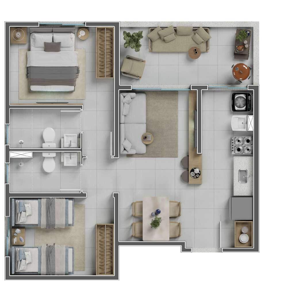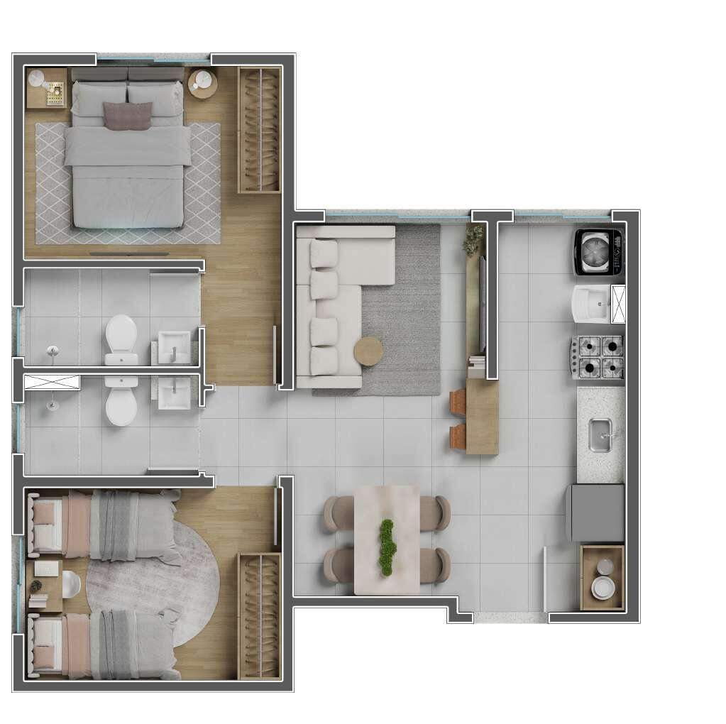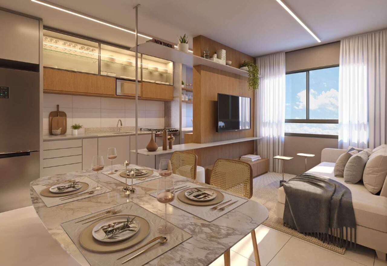 Todos os apartamentos contam com acabamentos de alto padrão, integração entre sala e cozinha, ampla iluminação natural e previsão para ar-condicionado.